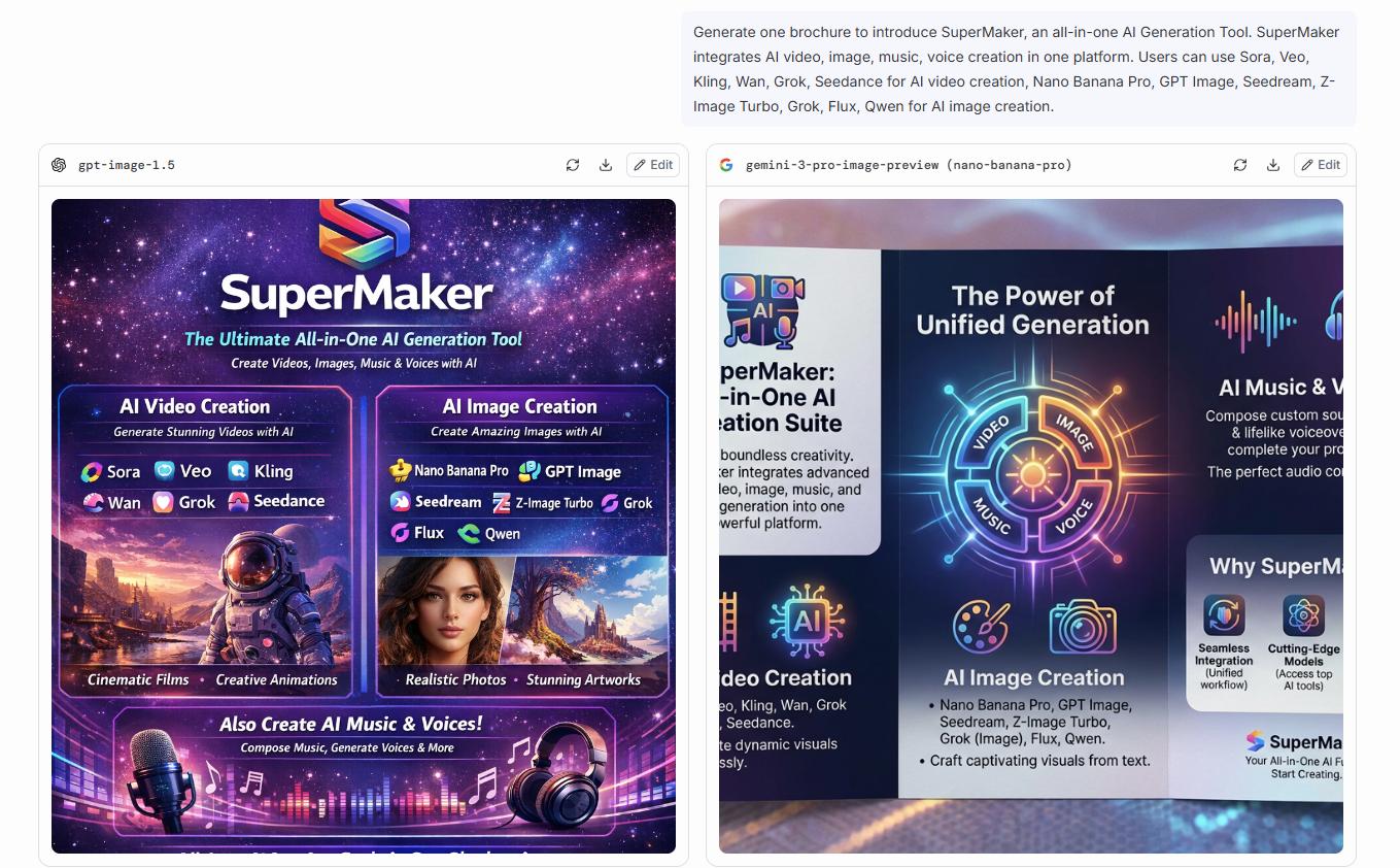 Experience GPT Image 1.5 and Nano Banana Pro on SuperMaker
