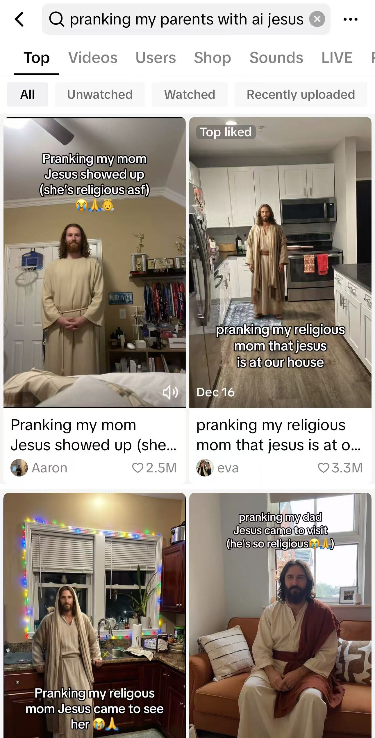 Many viral clips involve religious parents. The phrase “prank my parents with AI Jesus (she/he is religious asf)” resonates because the prank feels personal and emotionally charged rather than purely comedic. It is not about mocking faith, but about capturing a moment of surprise.