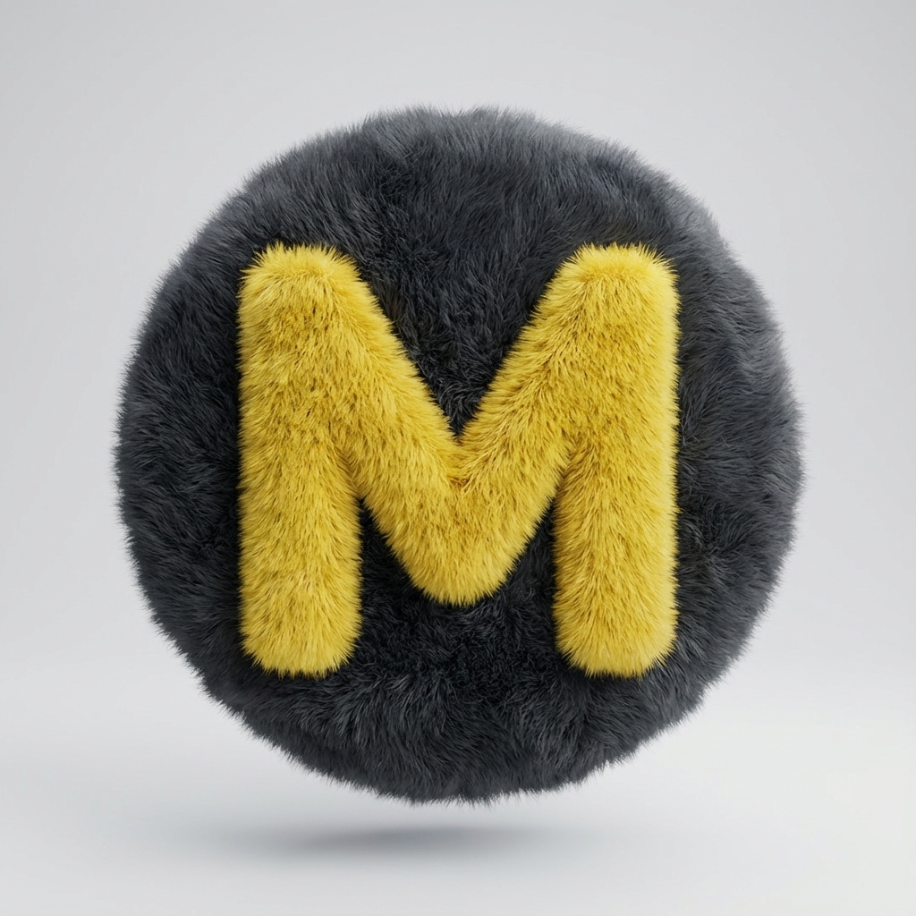 Transform a simple flat vector logo into a soft, 3D fluffy object. Use the exact colors. The shape is fully covered in fur, with hyperrealistic hair texture and soft shadows. The object is centered on a clean, light gray background and floats gently in space. The style is surreal, tactile, and modern, evoking a sense of comfort and playfulness. Studio lighting, high-resolution render. 1080x1080 dimension
