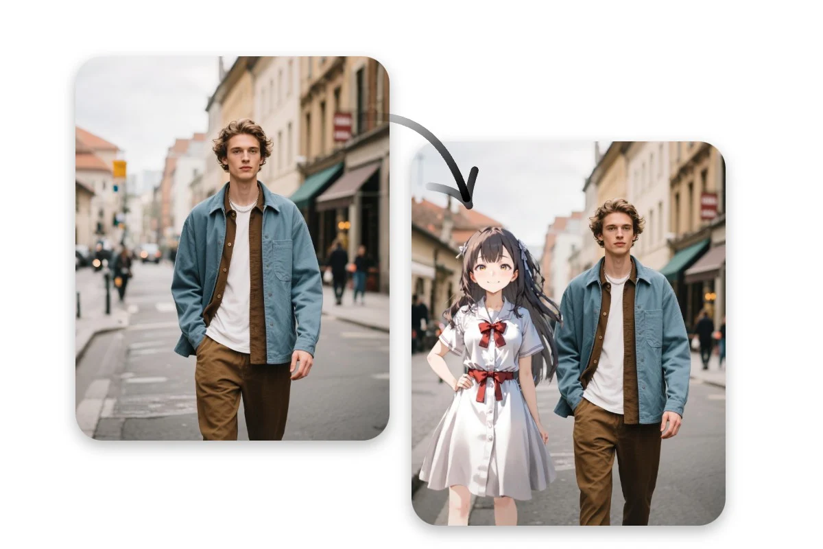 We offer flexible workflows to add people to photo projects. Use automatic background removal first then add people to photo for cleaner edges. Or directly add people to photo and combine people in photos using our image to image AI. This versatility makes our tool the best solution to add people to photo for both simple and complex editing tasks.