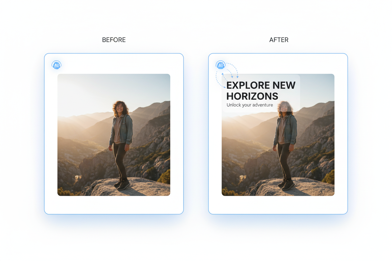 Unlike traditional design tools that require manual dragging, resizing, and constant alignment adjustment, our add text to image AI intelligently analyzes composition before placing text.