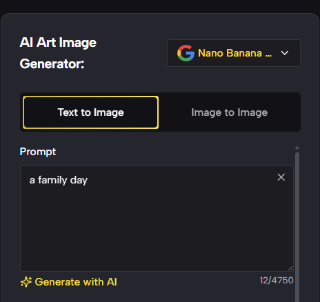 Begin by selecting the creation mode that best fits your creative goal. With text to image, you can transform written ideas, concepts, or descriptive prompts into visually compelling AI art image from scratch. Simply describe scenes, characters, moods, lighting, or artistic references, and the AI art generator will translate your words into detailed visuals.