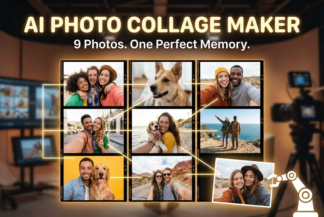 AI Photo Collage Maker Free | Multi-Pose 3x3 Grid | Instant AI Image Collage | Professional Portrait Effects | AI Picture Collage Maker