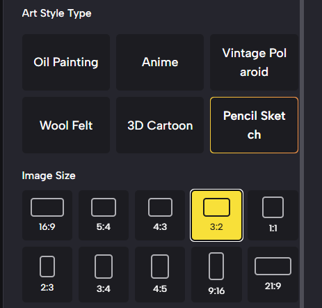 You can use oil painting, sketch, felt texture, vintage Polaroid, 3D cartoon, anime, and more. New styles are added regularly.