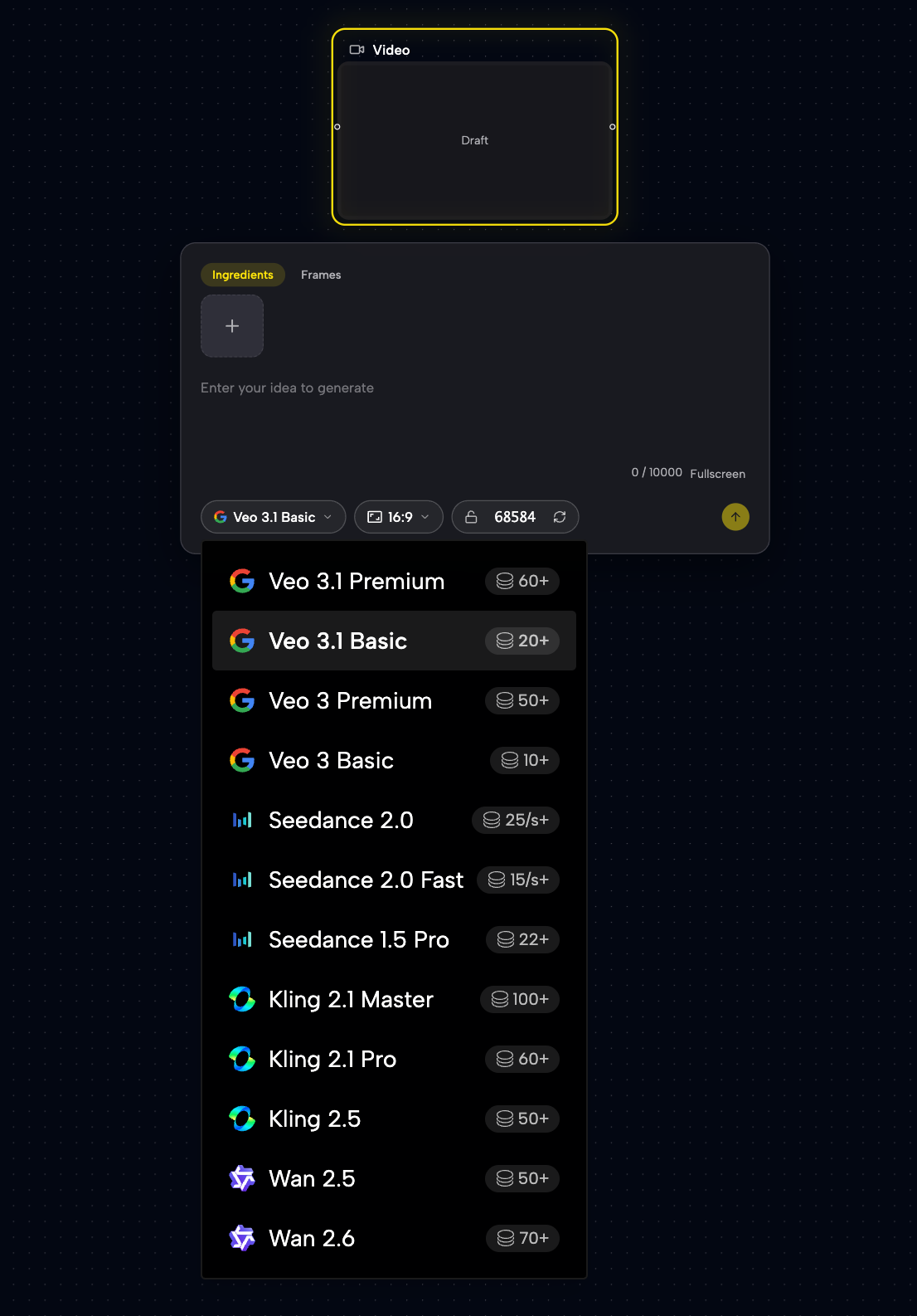 We provide access to top-tier models directly on the canvas: