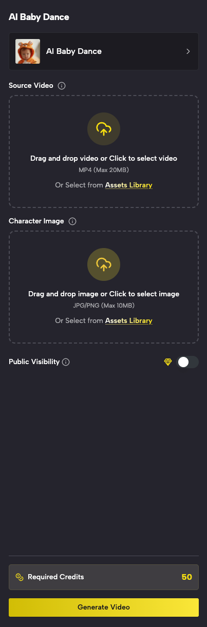 - Your uploaded dance video becomes the motion reference for your AI Baby Dance result—better input usually means smoother output.