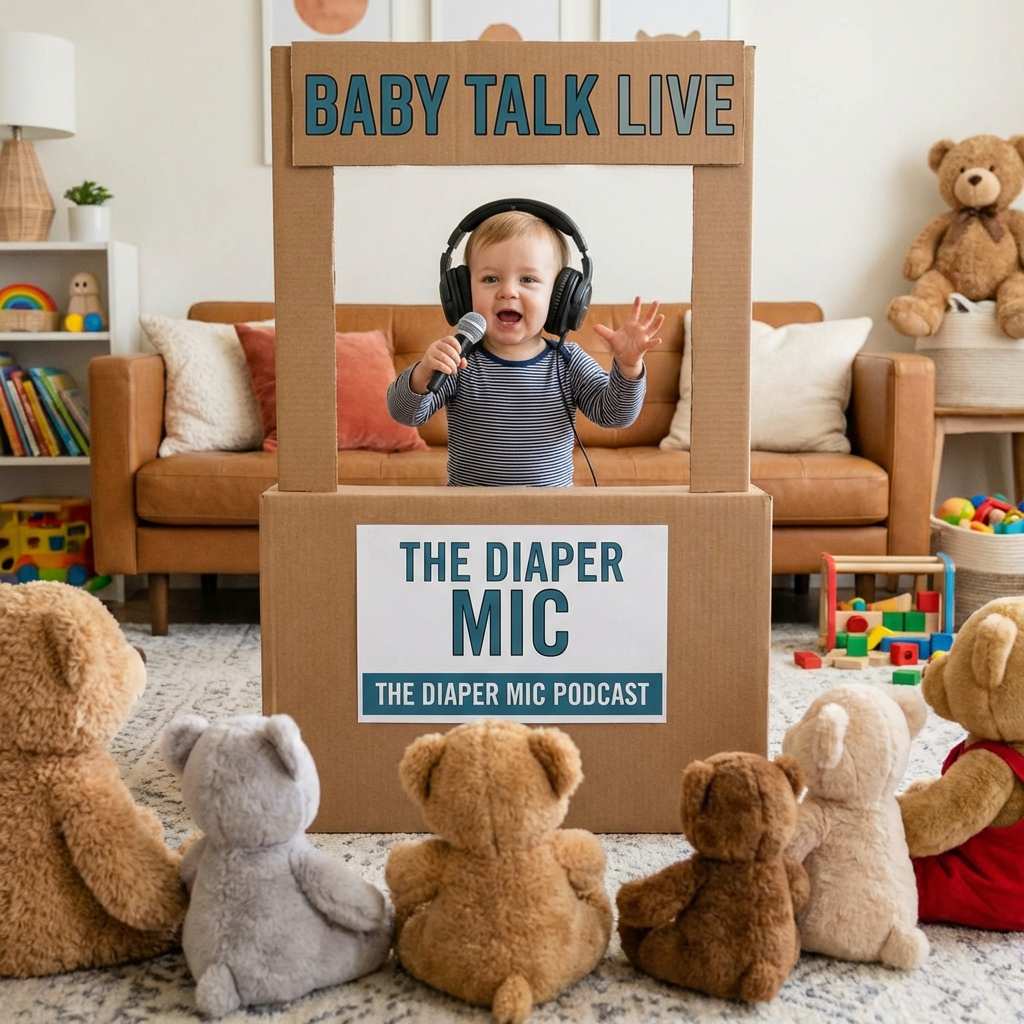 - Our AI baby talking generator frames the baby like a real podcast speaker with a mic, desk, and cozy set.