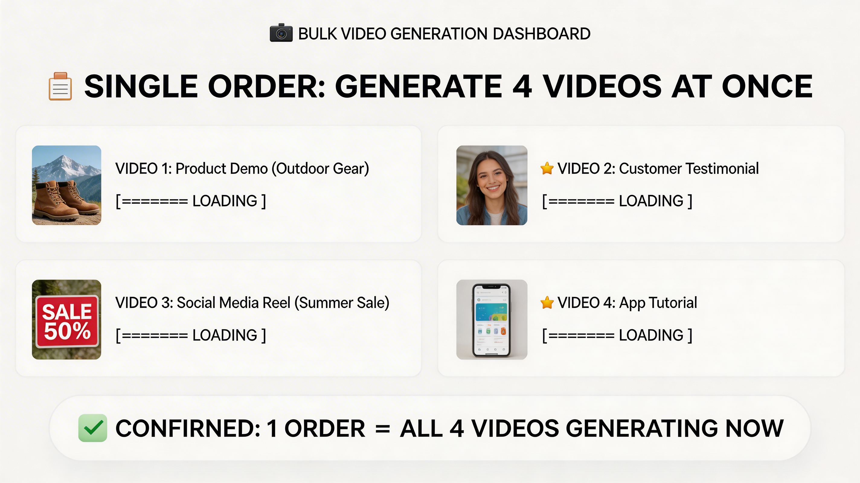 - With a free AI bulk video generator, one item can quickly become many different video outputs for testing and conversion.